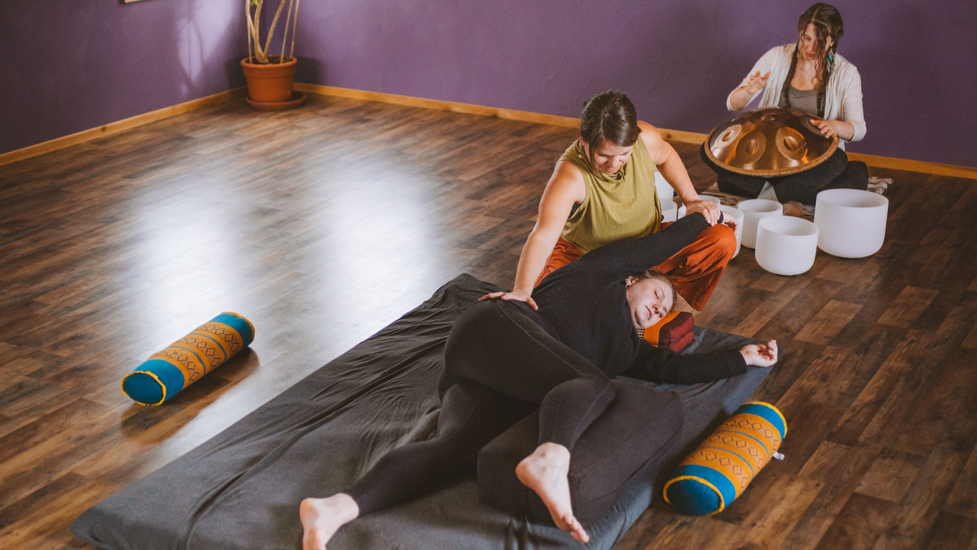 An immersive private experience combining personalized Thai yoga massage from Sue Lattin with a vibrational sound bathing experience led by Eve Farwell.